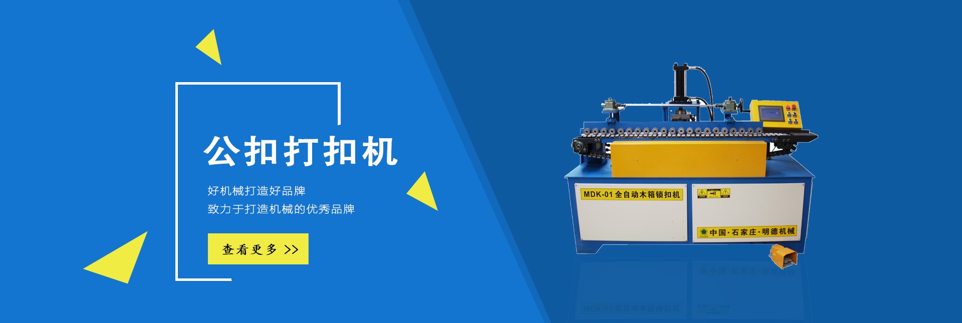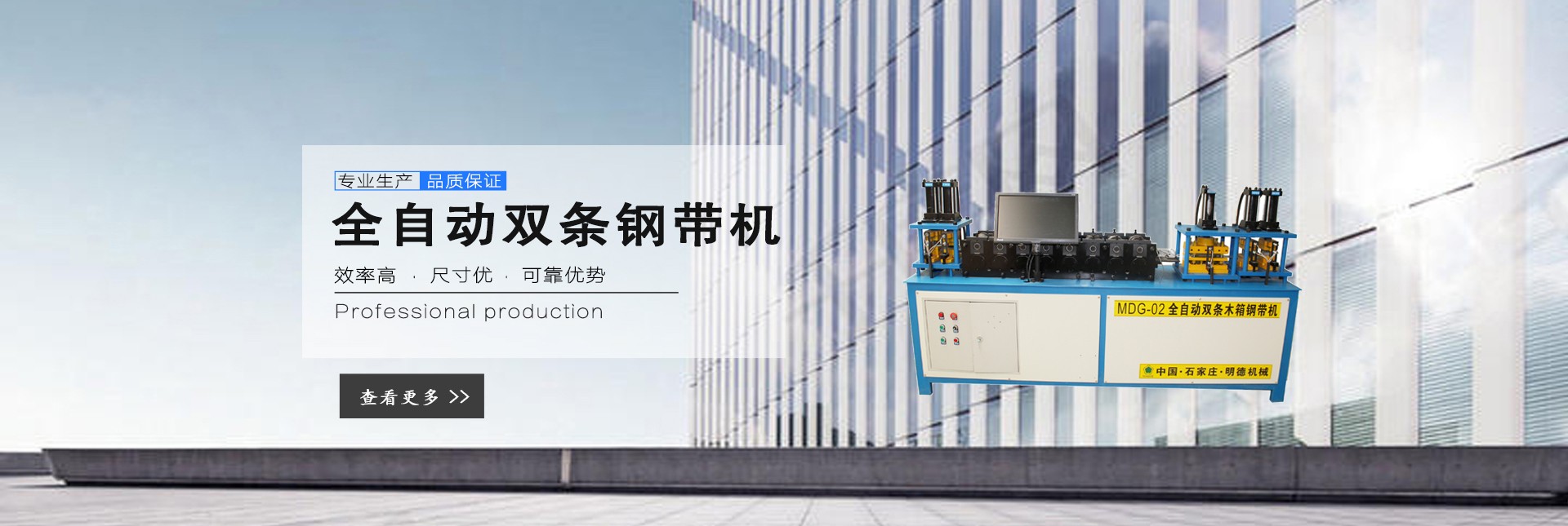 石家莊明德包裝機械有限公司是國內專業(yè)生產(chǎn)木全自動木箱鋼帶機、半自動公母扣木箱打扣機、全自動雙排孔定長切斷機、美式托盤打釘機械、托盤刨槽機、倒角機、木包裝箱、木托盤的生產(chǎn)廠家。